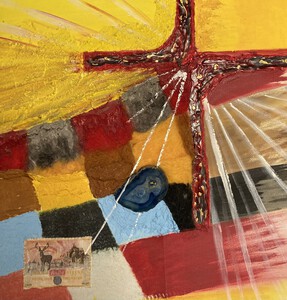 An old oil painting made by my dad, put in an acrylic painting to creat a work made by father & daughter